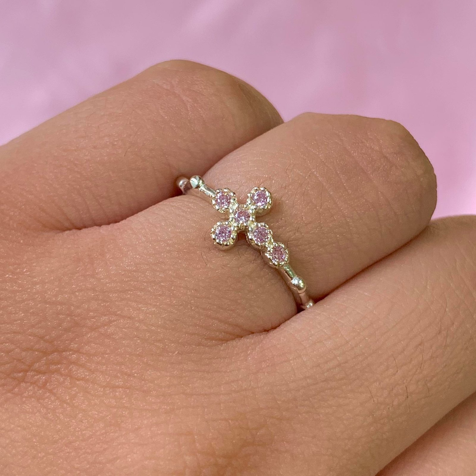 » Anillo Cruz con Piedras ROSA de Plata 925