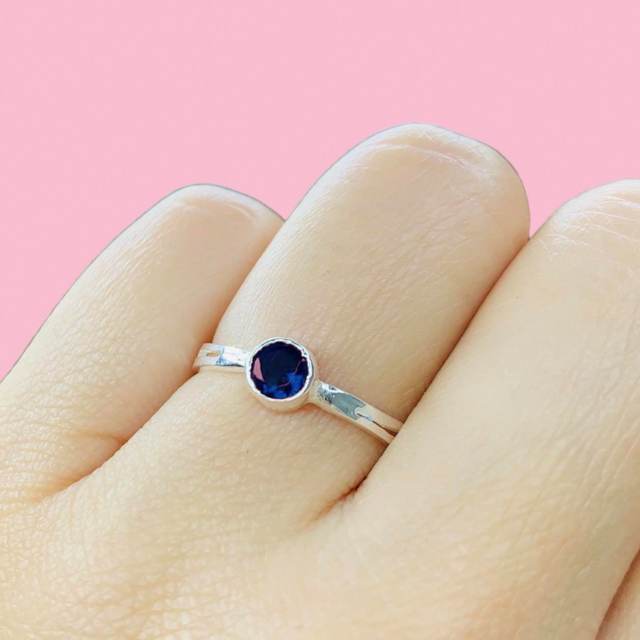 Anillo Solitario con Piedra Zafiro de Plata 925