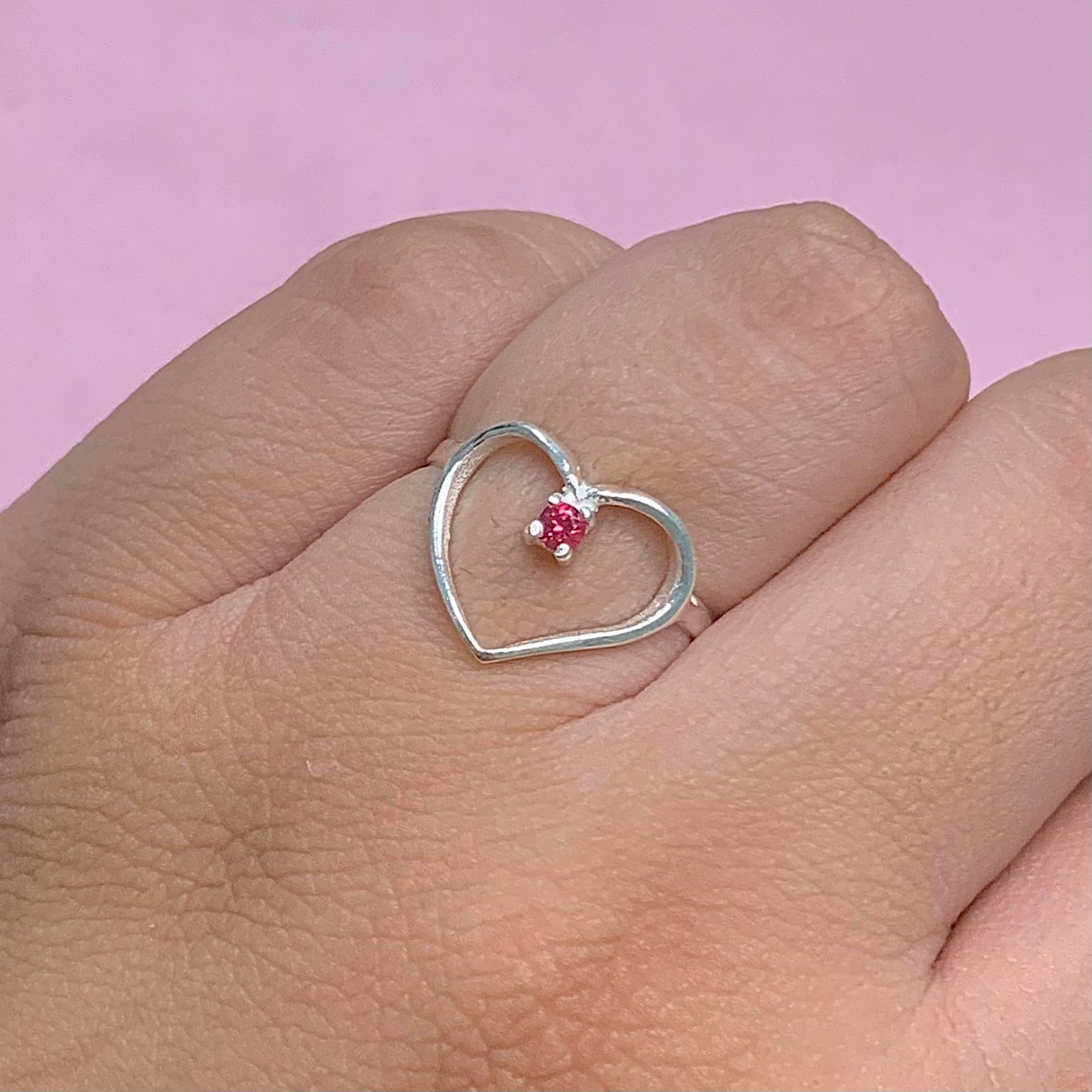 Anillo Corazon con Piedra Fuxia de Plata 925