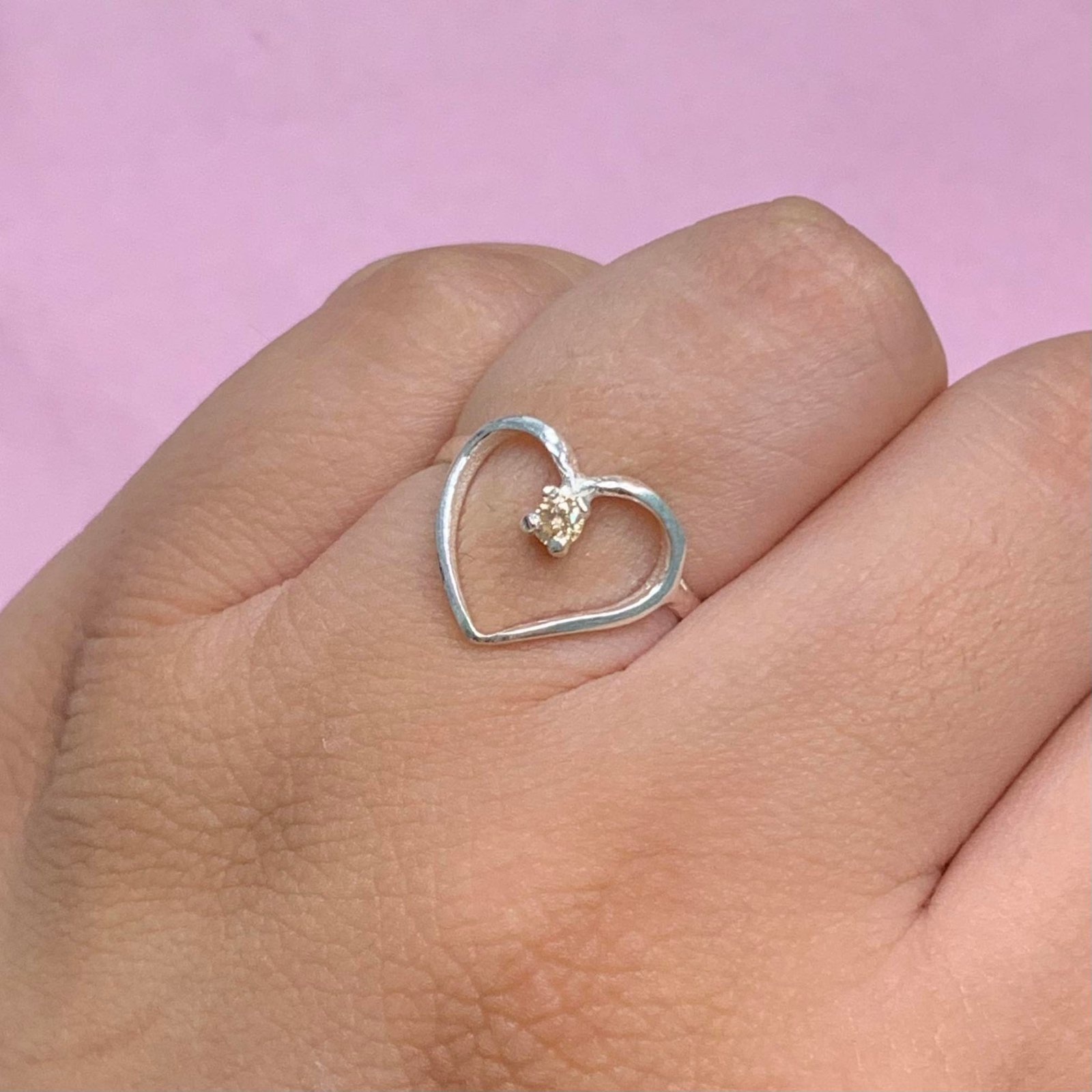 Anillo Corazon Con Piedra Ambar de Plata 925