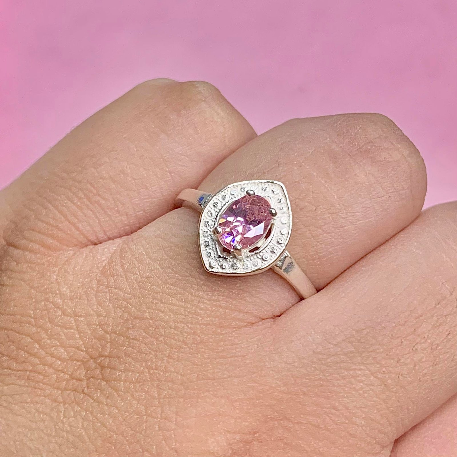 Anillo Oval Pani con Piedra Rosa de Plata 925