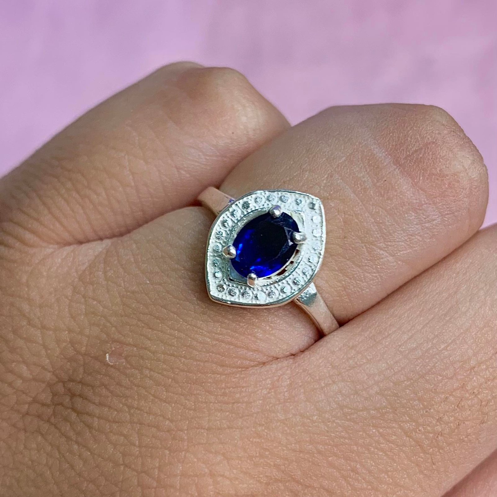 Anillo Oval Pani con Piedra Zafiro de Plata 925