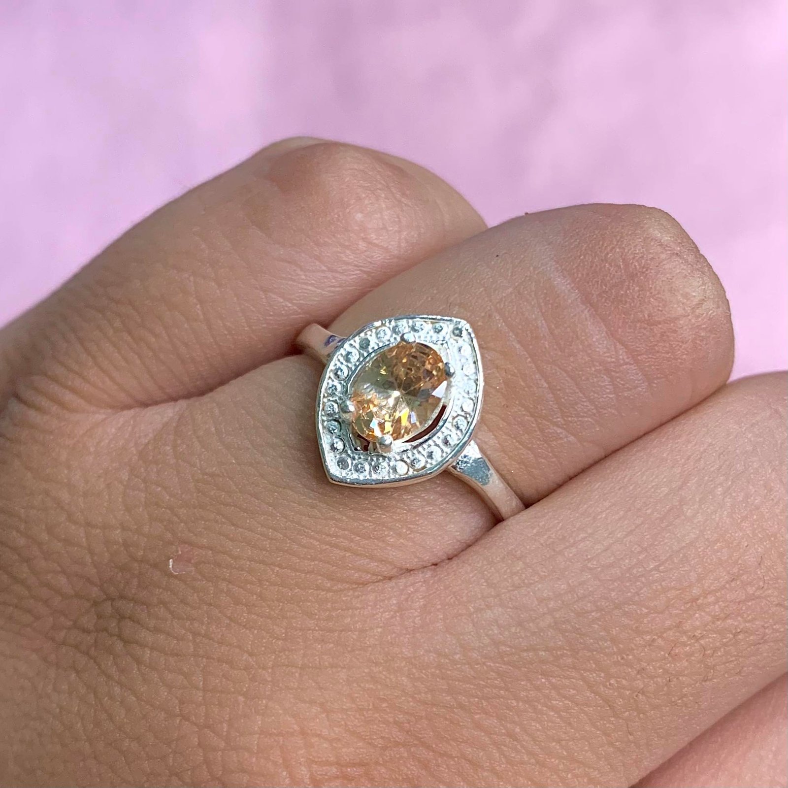 Anillo Oval Pani con Piedra Ambar de Plata 925