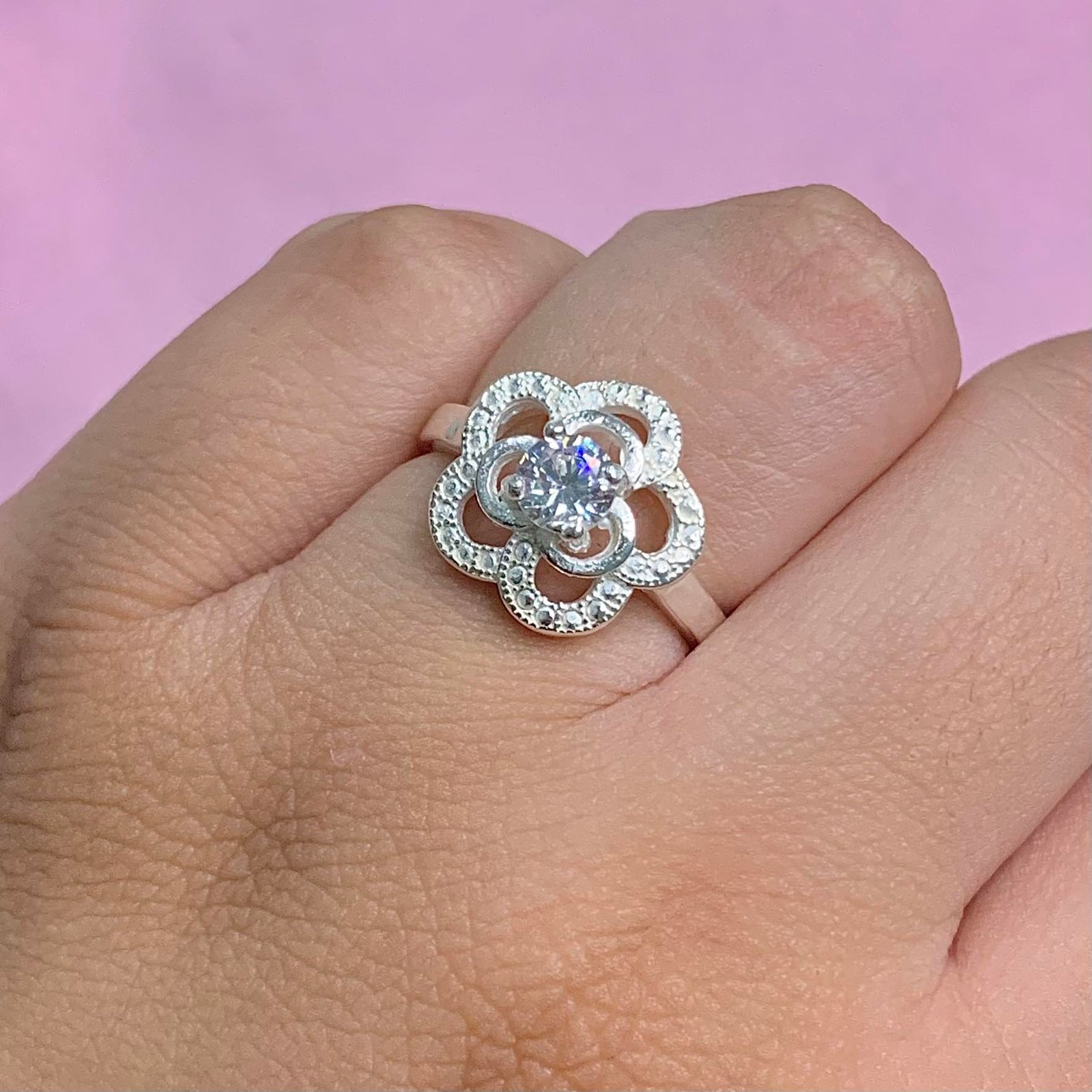Anillo Flor con Piedra de Plata 925