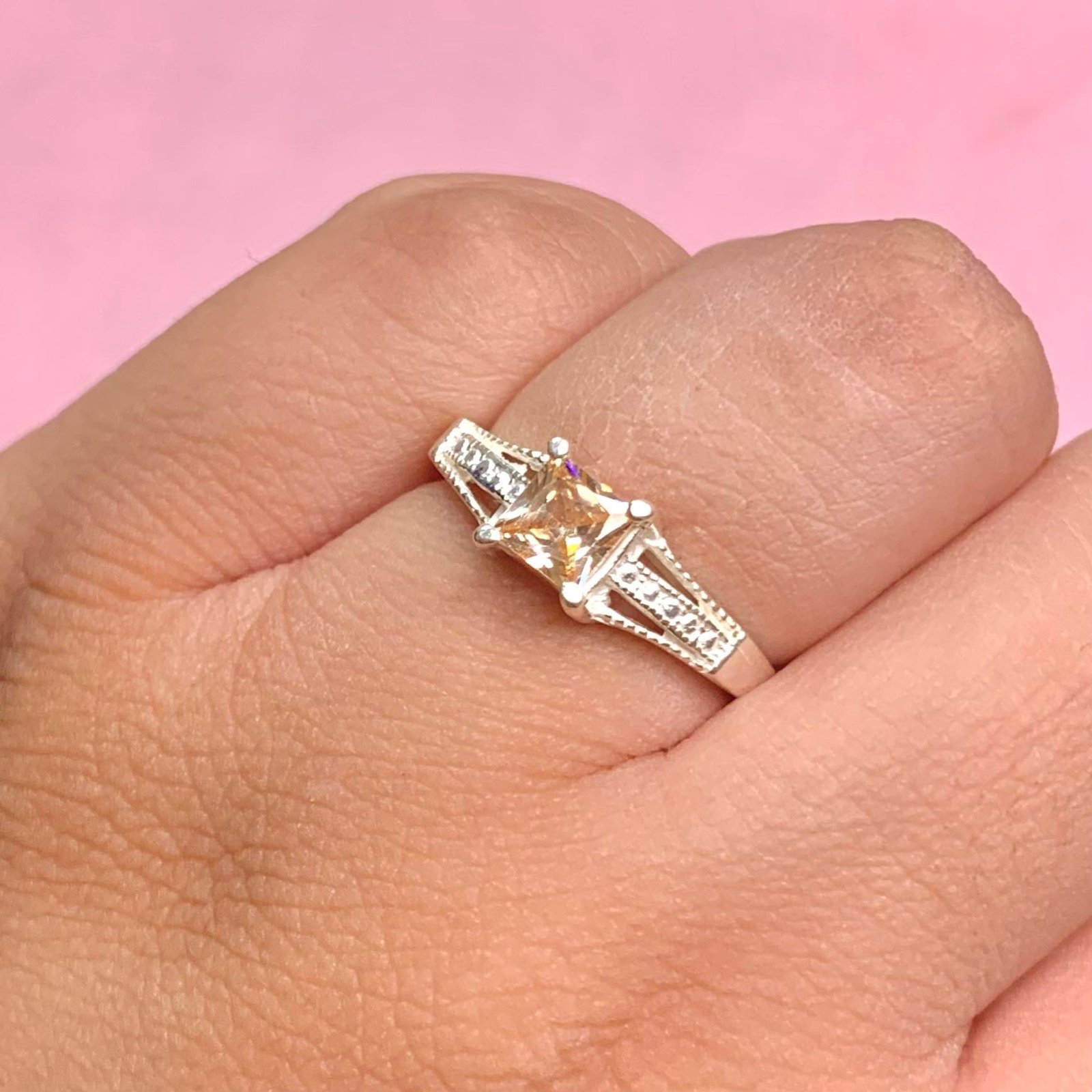 Anillo Cuadrado con Piedra Ambar de Plata 925