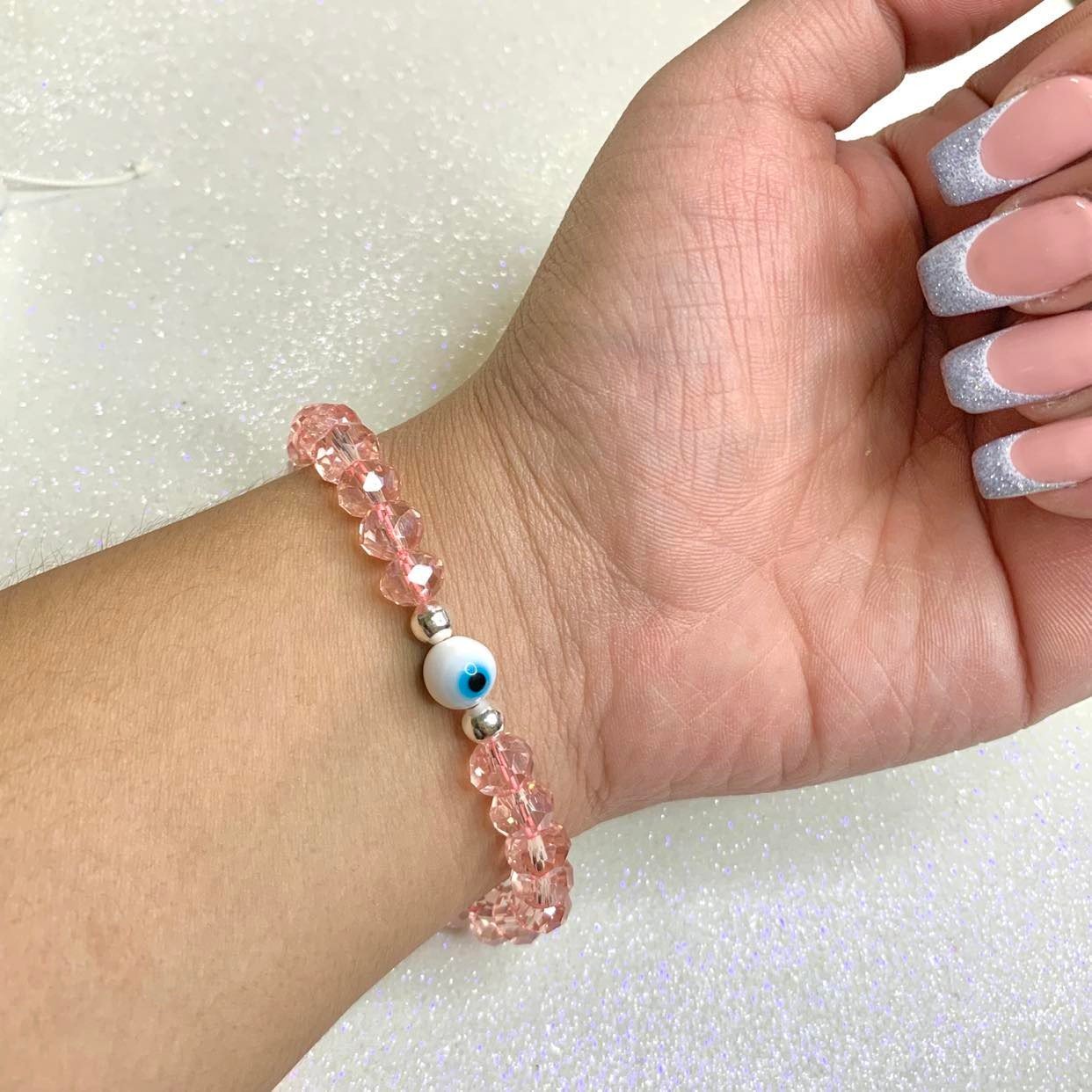 Pulsera con Cristales Rosa y Ojo protector