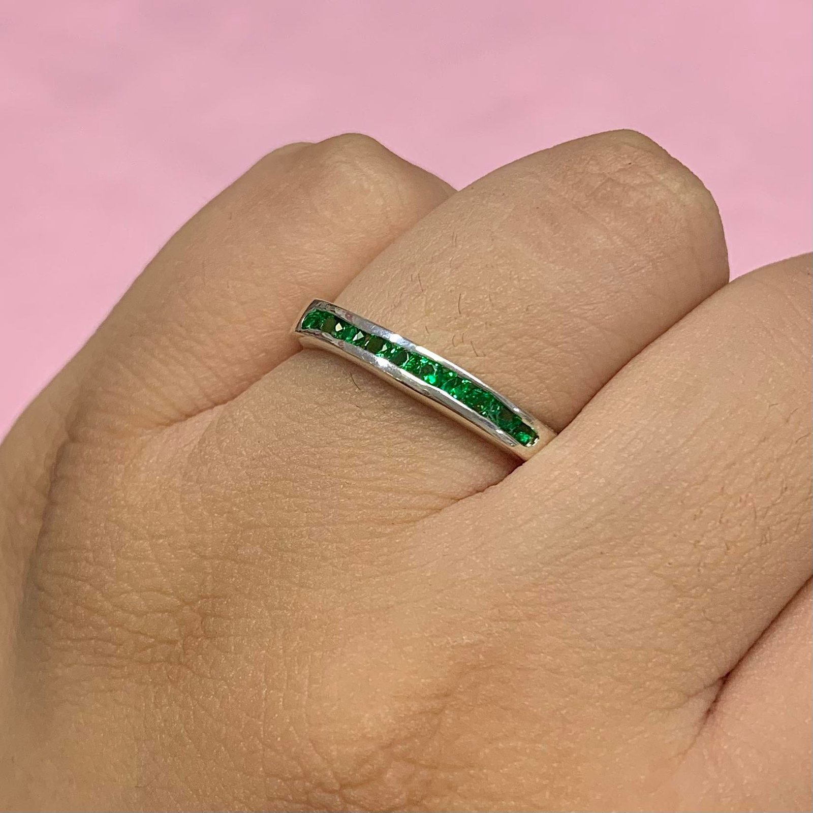 anillo medio sin fin verde de plata 925