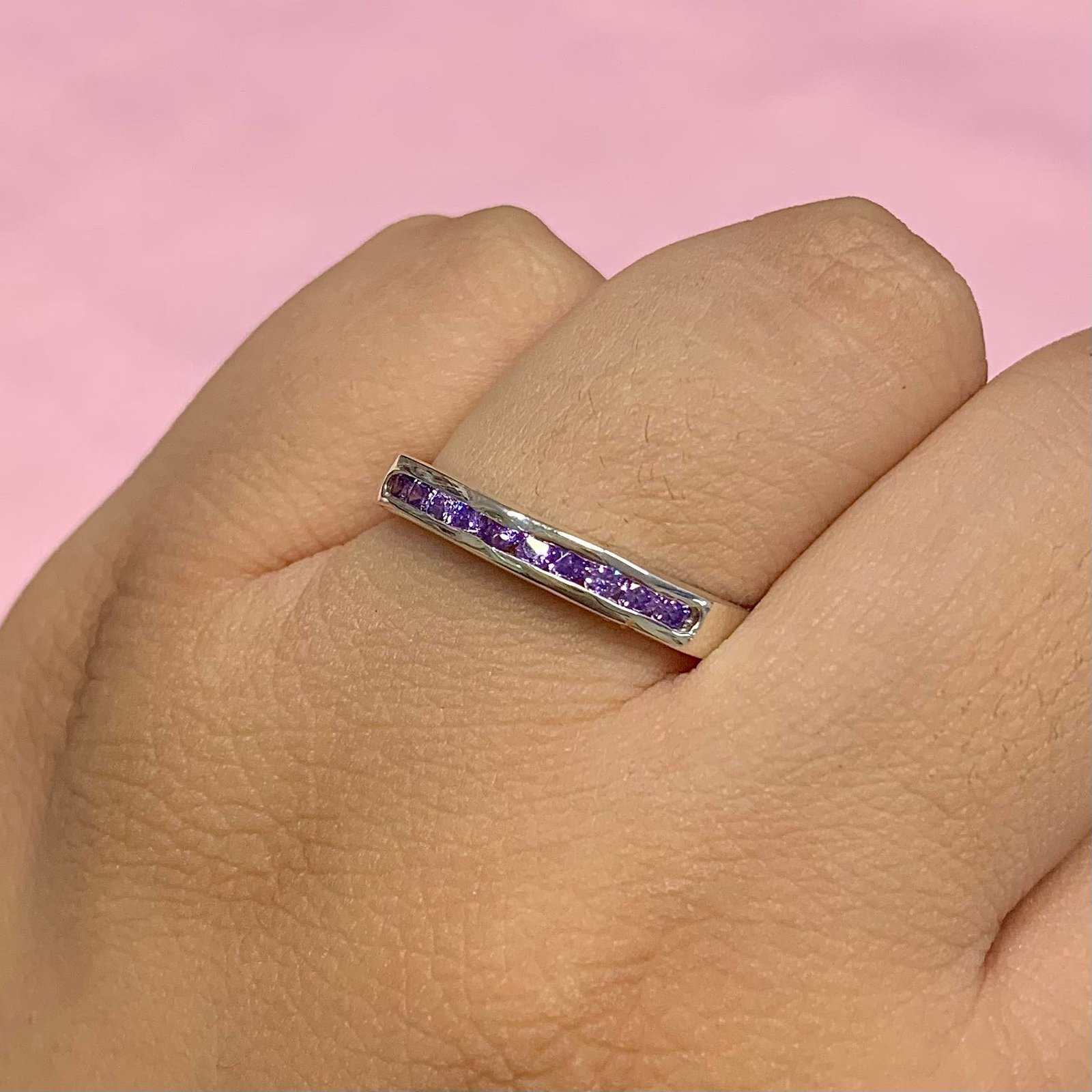 anillo medio sin fin violeta de plata 925