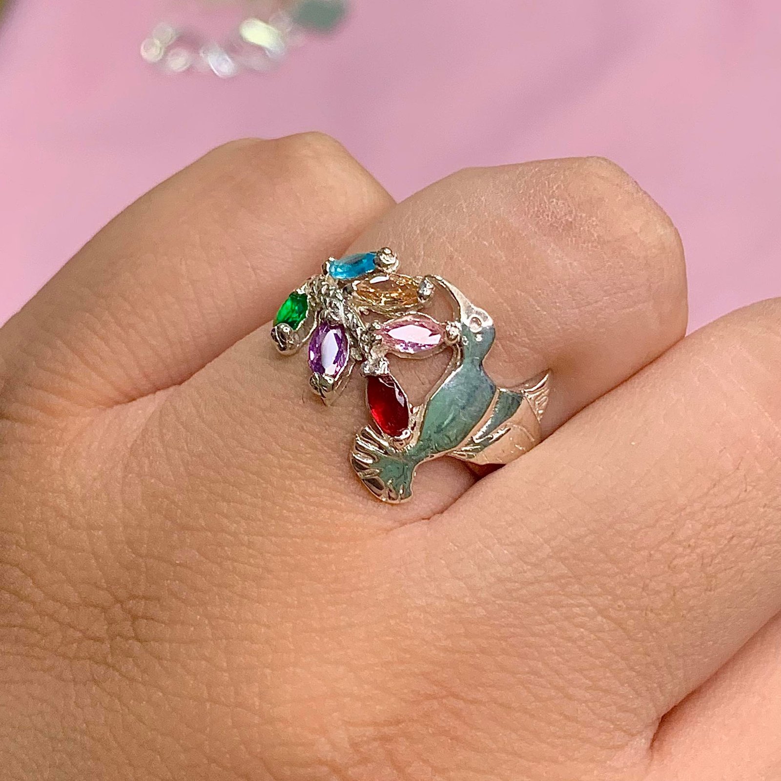Anillo Colibri en ramita multicolor de Plata 925