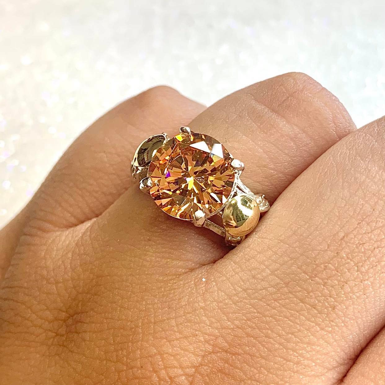» Anillo con cubic redondo Ambar de Plata y Oro