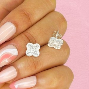 Aros Van Cleef con micropave blanco Plata Italiana