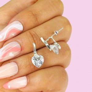 Aros Corazon colgante cubic Blanco Plata 925
