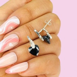 Aros Corazon colgante cubic Negro Plata 925