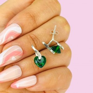 Aros Corazon colgante cubic Verde Plata 925