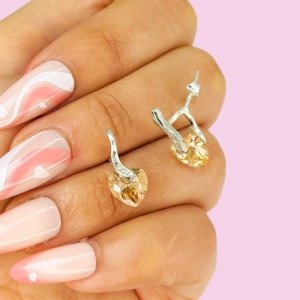 Aros Corazon colgante cubic Ambar Plata 925