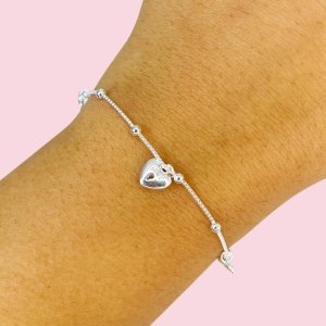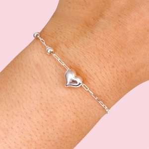 Pulsera Corazon grabado love y bolitas Plata Italiana