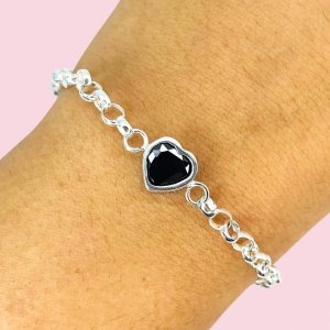 Pulsera rolo con Susanita Corazon Negro plata 925