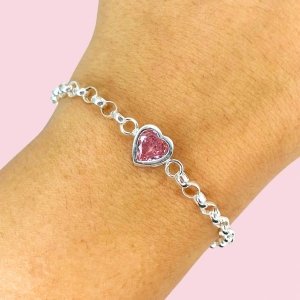 Pulsera rolo con Susanita Corazon Rosa plata 925