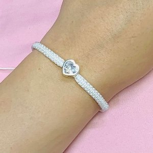 Pulsera Hilo Blanco Proteccion de Amor con Corazon de Plata 925