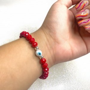 Pulsera con Cristal Rojo y Ojo Protector en Hilo Rojo
