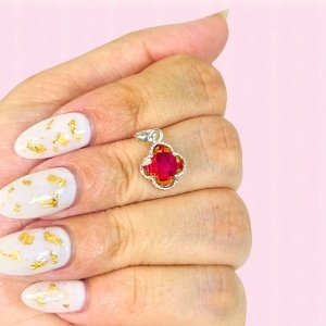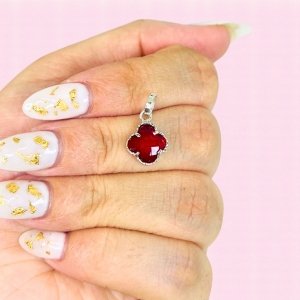 Dije trebol inflado con piedra engarzada Rubi Plata 925
