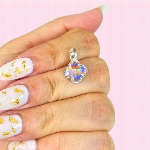 Dije trebol inflado con piedra engarzada Aurora Boreal Plata 925