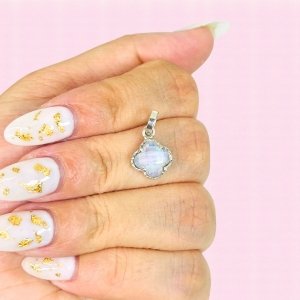 Dije trebol inflado con piedra engarzada Tornasol Plata 925
