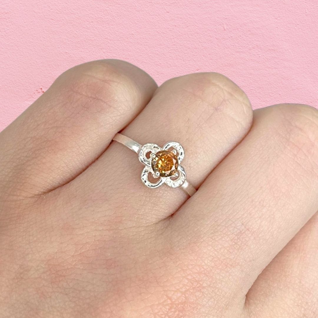 Anillo Trebol de la suerte cubic Ambar de Plata 925