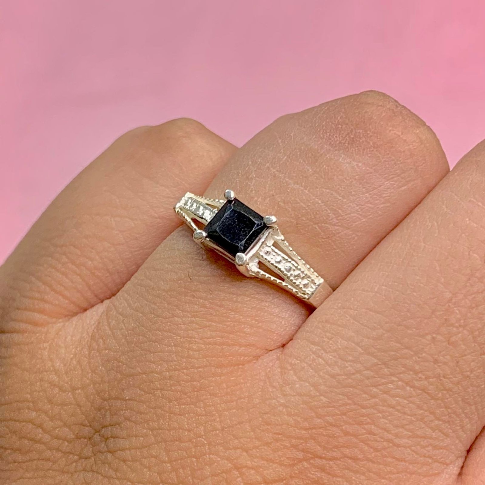 Anillo Cuadrado con Piedra NEGRA de Plata 925